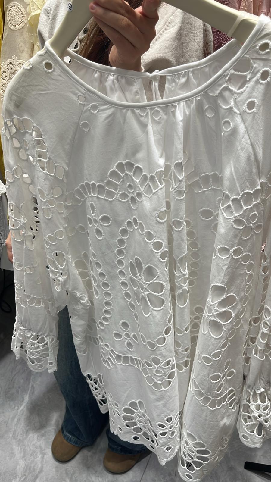 3863S WHITE ELEGANT, LACE BLOUSE, LOOSE FIT, with INTRICATE LACE PATTERN