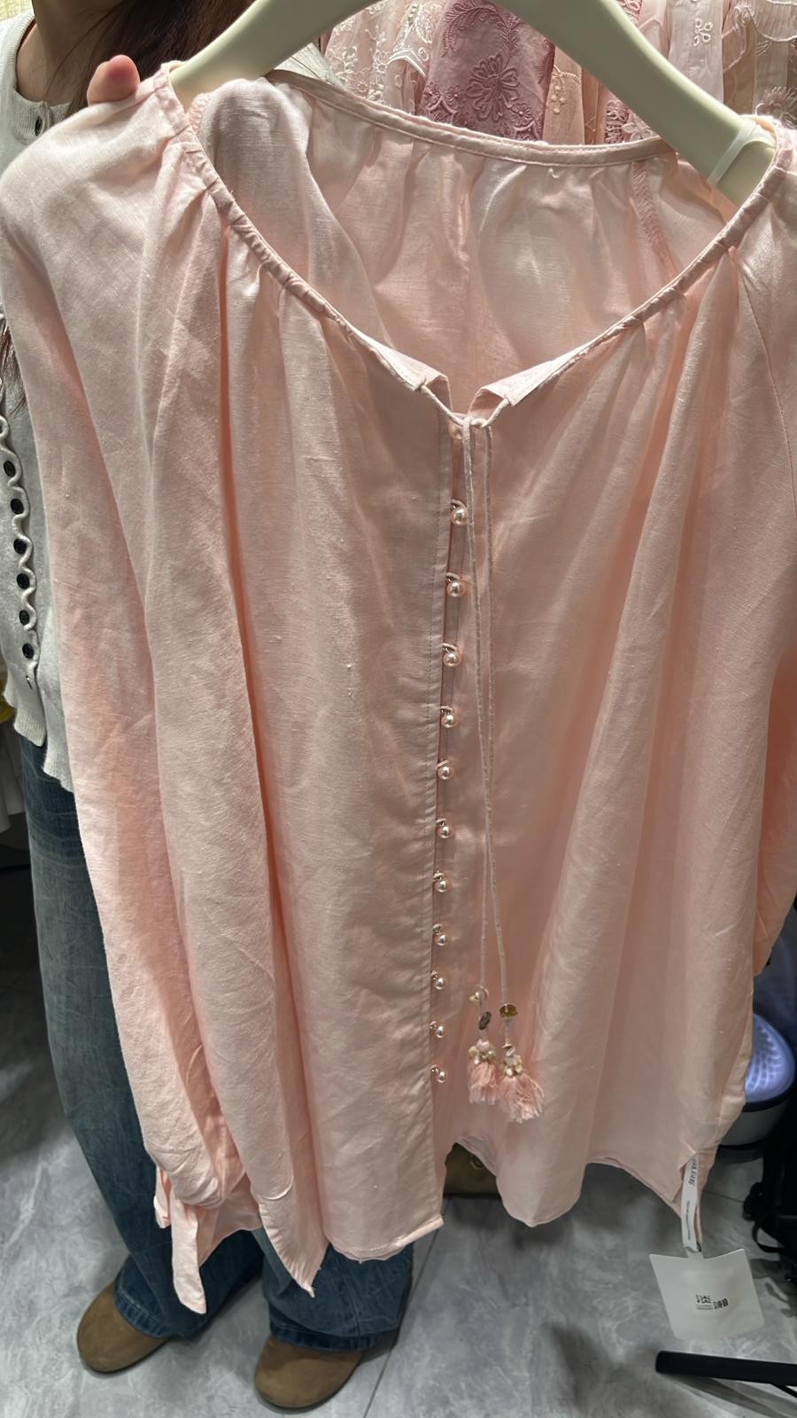 3860S PINK BOHO, LINEN BLOUSE, LOOSE FIT, with BUTTON FRONT DETAIL