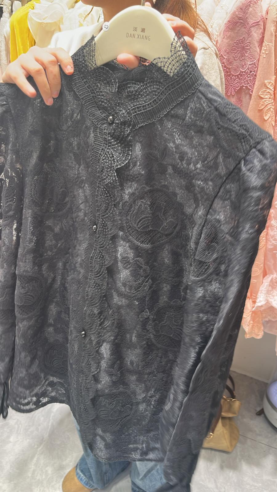3861S BLACK ELEGANT, LACE BLOUSE, SLIM FIT, with INTRICATE LACE DETAILING