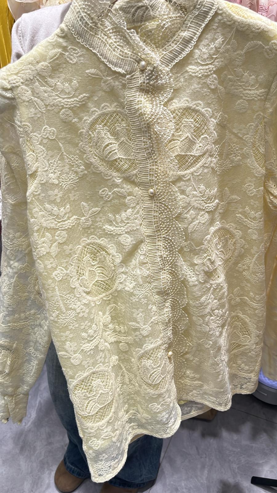 3862S YELLOW ELEGANT, LACE BLOUSE, TAILORED FIT, with INTRICATE LACE DETAILING