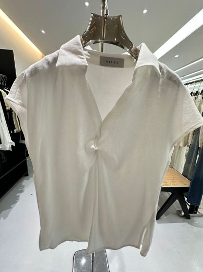 3570S WHITE MINIMALIST, LINEN BLOUSE, RELAXED FIT, with KNOT DETAIL
