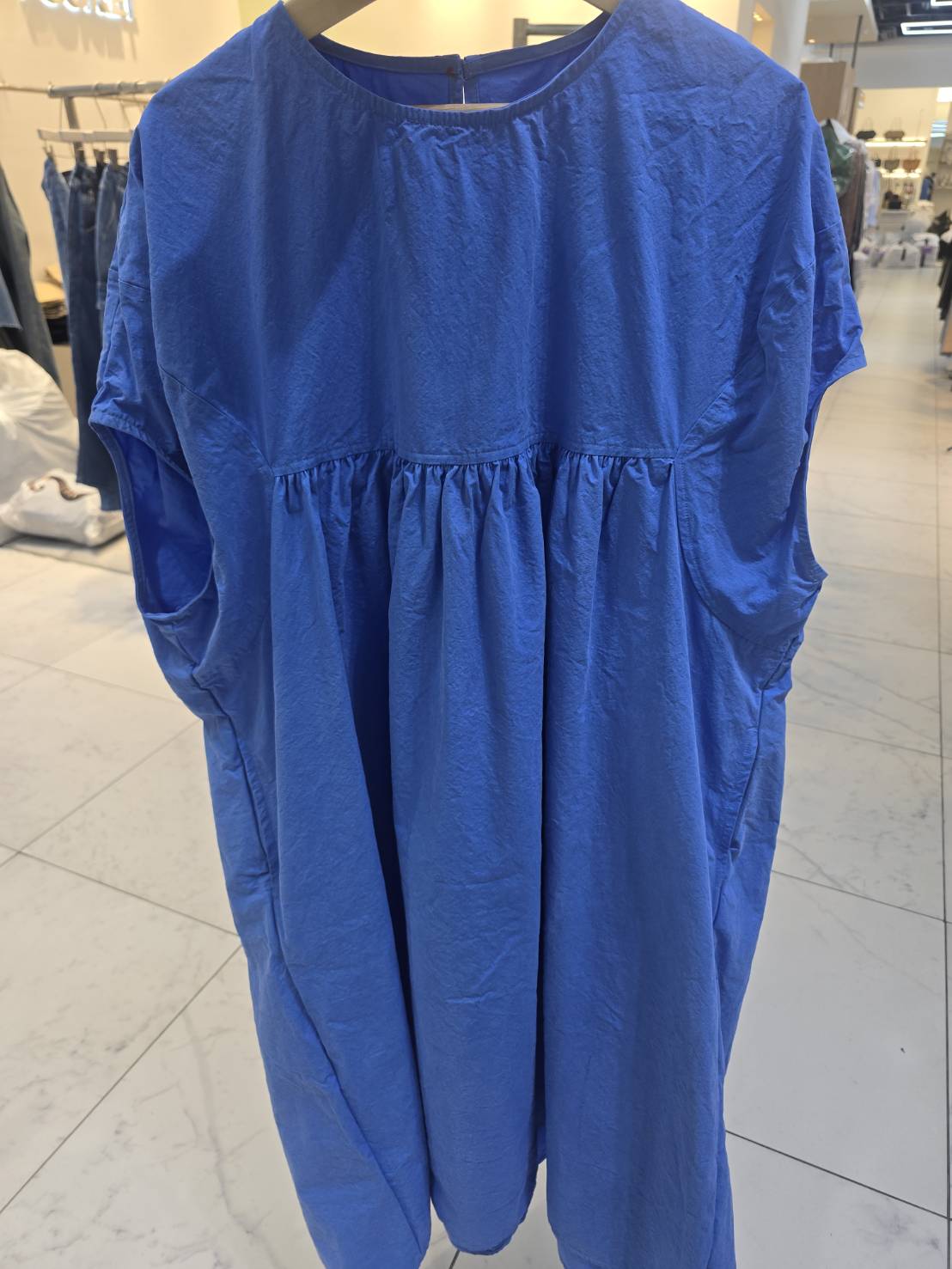 3637D BLUE CASUAL, LINEN DRESS, RELAXED FIT, WITH GATHERED WAIST