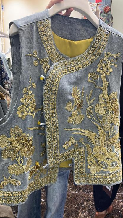3720S DENIM VINTAGE, FLORAL, DENIM VEST RELAXED FIT, with SEQUIN EMBROIDERY