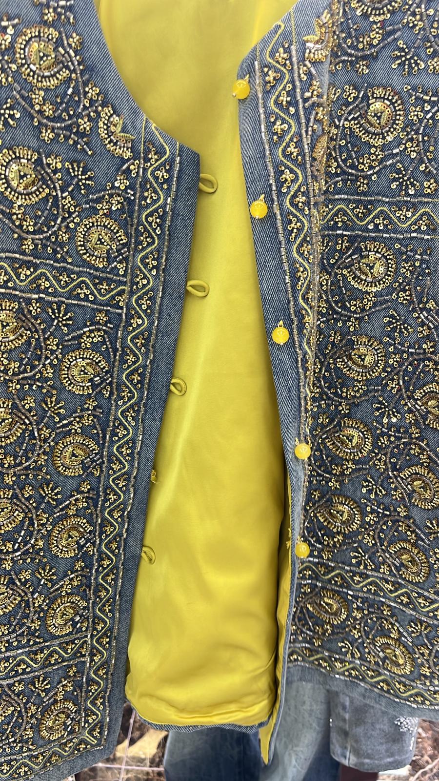 3726S YELLOW VINTAGE, DENIM JACKET, TAILORED FIT, with INTRICATE EMBROIDERY