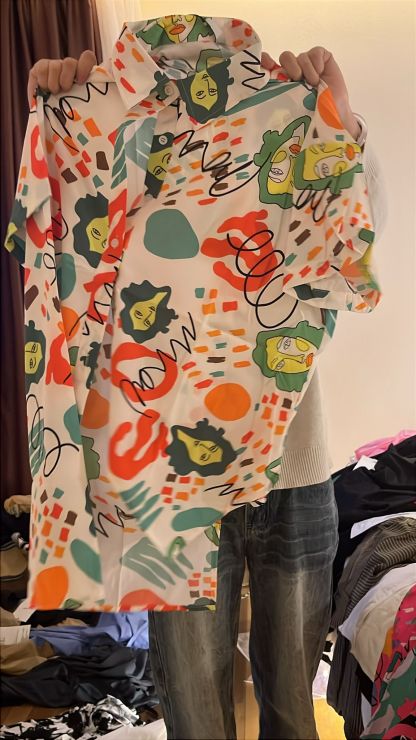 3755S BEIGE COLLAR SHIRT WITH MULTI COLOR DESIGN