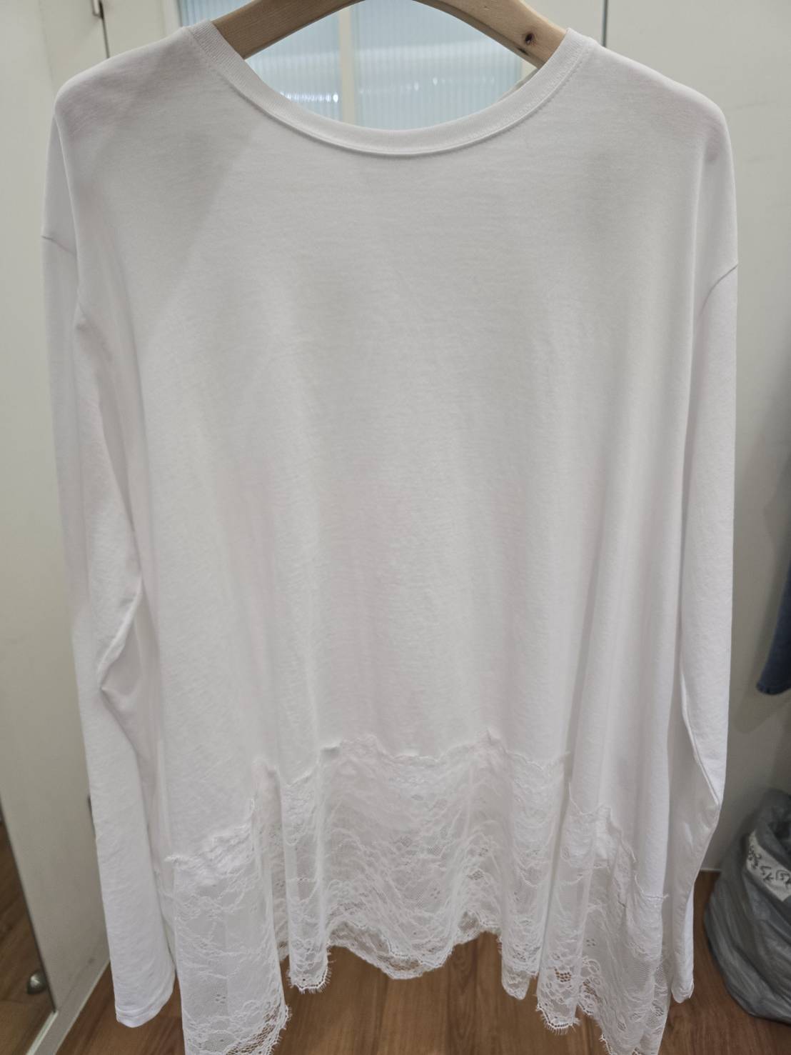 3771D WHITE CASUAL, LACE BLOUSE, RELAXED FIT, WITH LACE HEM