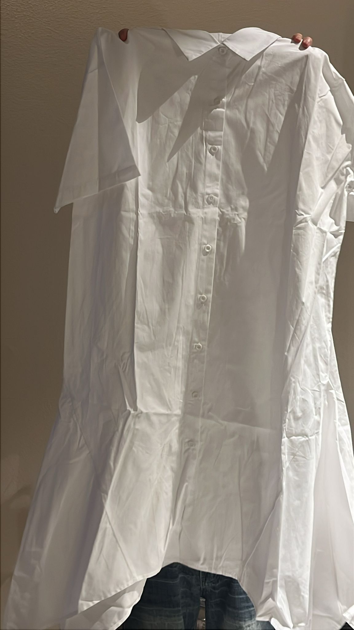 3773S WHITE ELEGANT COLLAR SHORT SLEEVE SHIRT DRESS