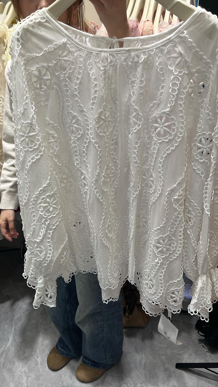 3850S WHITE BOHO, LACE BLOUSE, FLOWY FIT, with INTRICATE LACE PATTERN