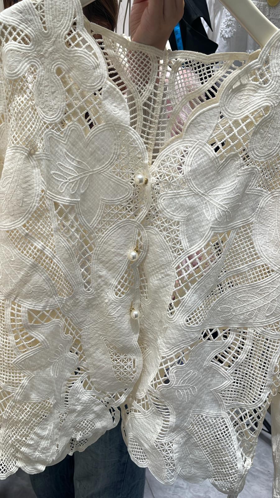 3866S WHITE ELEGANT, LACE BLOUSE, LOOSE FIT, with PEARL BUTTONS