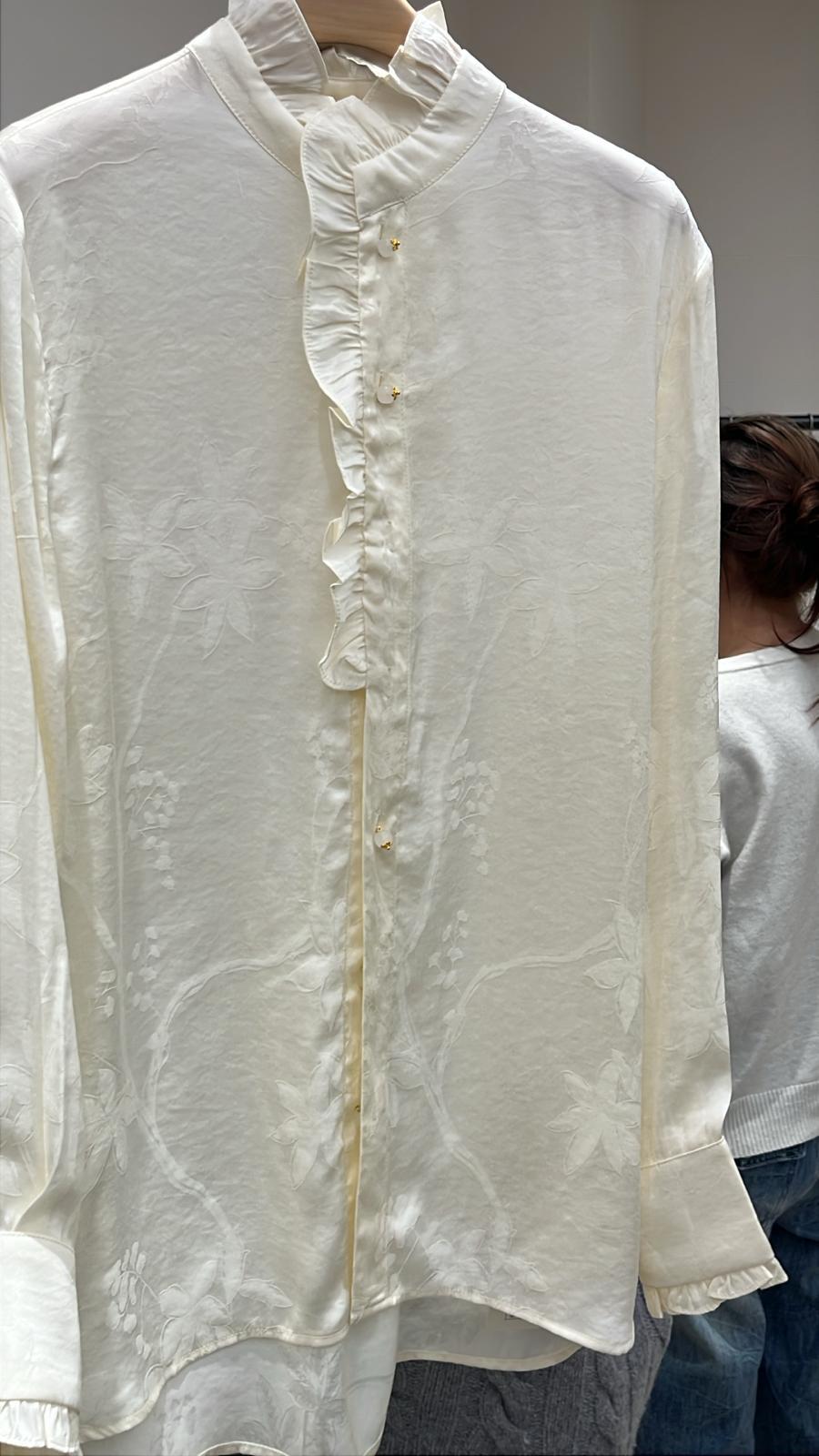 3987S IVORY ELEGANT, FLORAL BLOUSE, RELAXED FIT, with KNOT BUTTONS AND EMBROIDERY