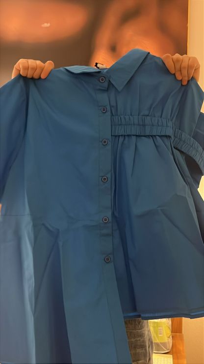 3750S TEAL MINIMALIST BLOUSE, RELAXED FIT, with ASYMMETRICAL BUTTONS