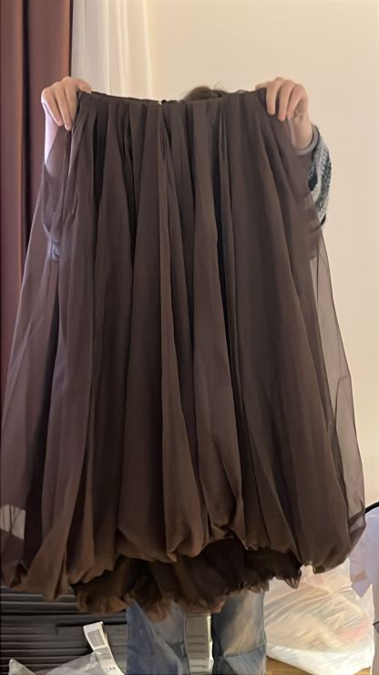 3832S BROWN ELEGANT SKIRT, FLOWY FIT, with SHEER LAYERS