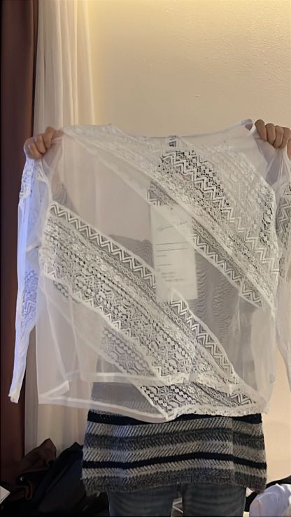 3835S WHITE BOHO, LACE BLOUSE, RELAXED FIT, with SHEER LACE PANELS