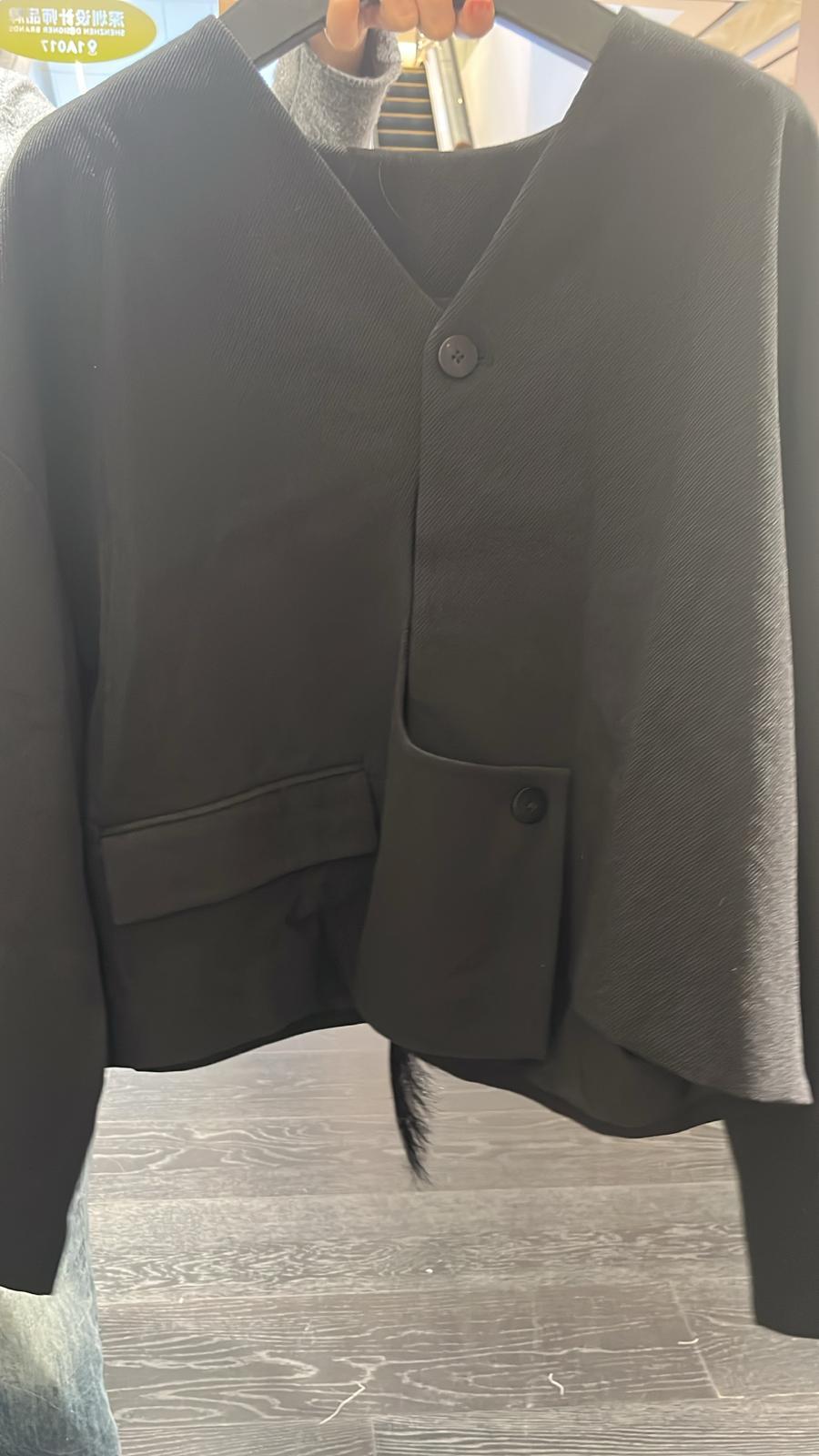 4086S BLACK ELEGANT, RIBBED BLAZER, TAILORED FIT, with ASYMMETRICAL BUTTONS