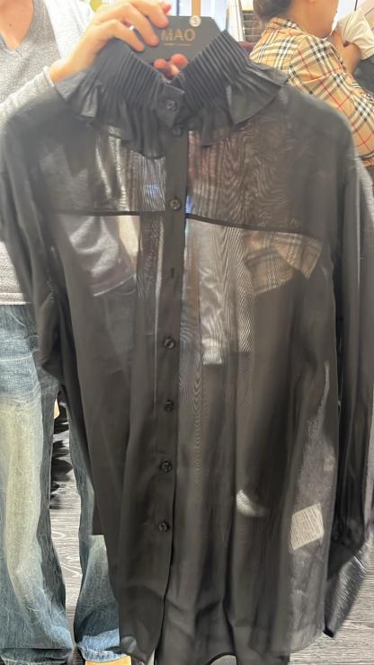 4095S BLACK ELEGANT, SHEER BLOUSE, LOOSE FIT, with RUFFLED COLLAR