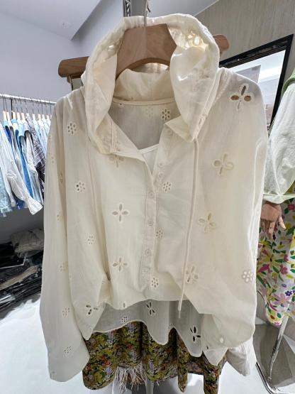 6436A WHITE BOHO, LACE BLOUSE, RELAXED FIT, WITH EYELET EMBROIDERY
